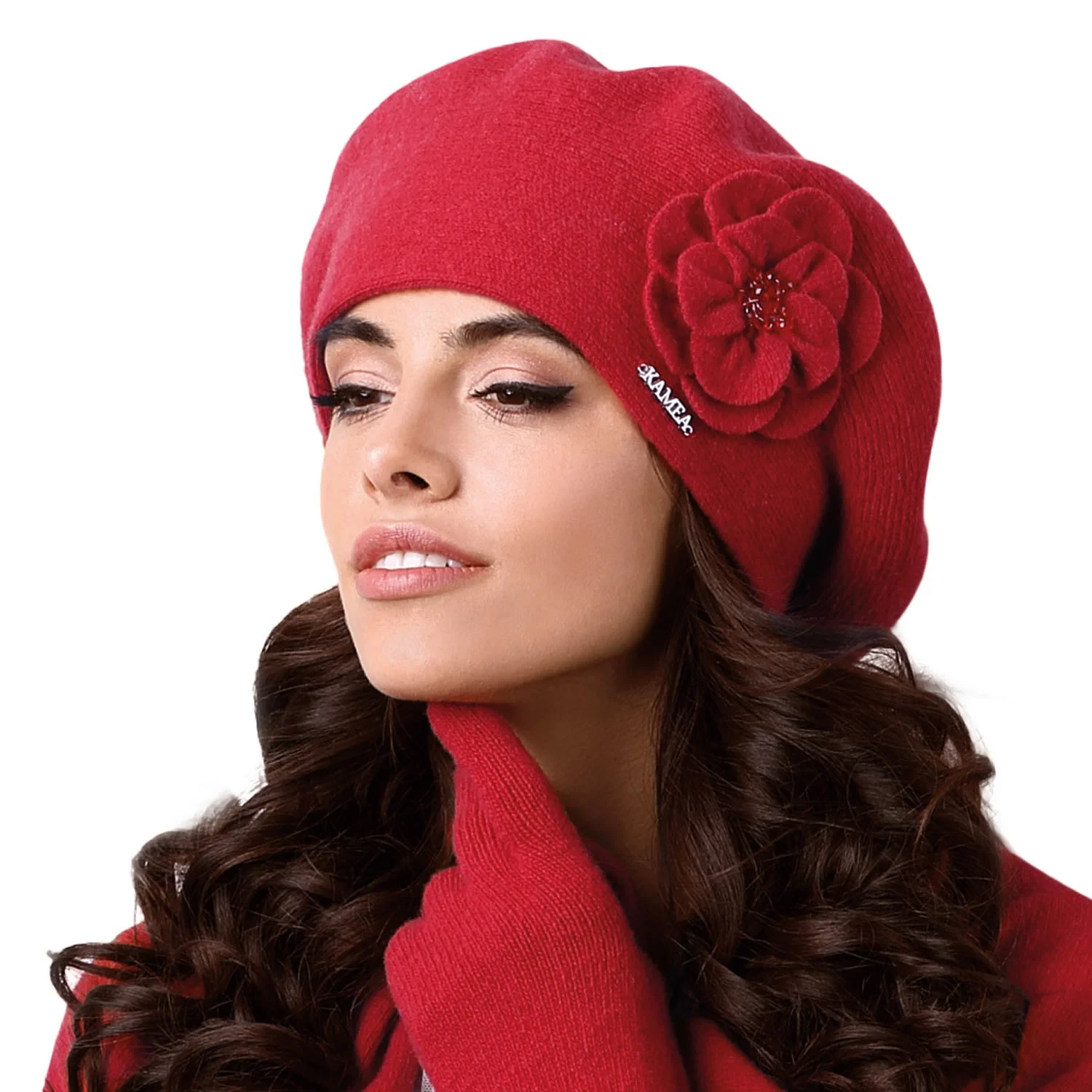 Pokrývky hlavy od spoločnosti Kamea. Model Vicenza. Výrobok je vyrobený z 80% z vlny a 20% z elastanu. Výhody produktu: elegantné vlnené s kvetinou. Výrobok pre ženy.parametre