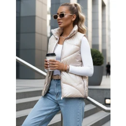 Dámska prešívaná vesta so stojačikom béžová FashionStreet TY3476
