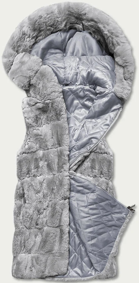 Šedá kožušinová vesta s kapucňou (BR8060-9)