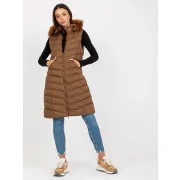 Hnedá dlhá vesta s kapucňou RUE PARIS .