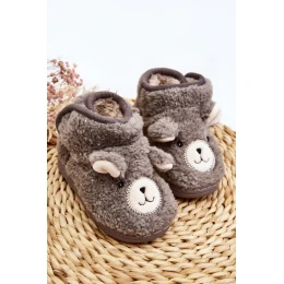 Kapcie Dziecięce Ocieplane Z Misiem Szare Eberra