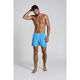 Veľmi pohodlné, voľné, podšité plavecké šortky z najnovšej kolekcie Henderson, edícia Leto 2021, v skvelej modrej farbe (v krásnom odtieni) s drobným vzorom. Pohodlný strih: pohodlný, elastický, mäkký pás s dodatočnou šnúrkou na úpravu. Rýchloschnúci materiál. Zadné vrecko s pútkom na opasok. 100% polyester.
