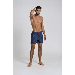 Pohodlné pánske plavky z najnovšej kolekcie Henderson. Módna farba, vyrobené z rýchloschnúcej tkaniny s jemným námorníckym vzorom. Skvelé na plážové športy a bežné prechádzky, veľmi pohodlné. Vnútri podšité. 2 vrecká na bokoch, tretie vrecko na chrbte s pútkom na opasok. 100% polyester.