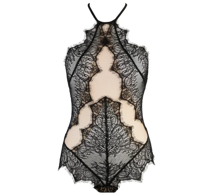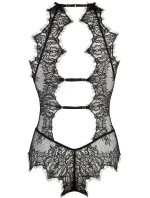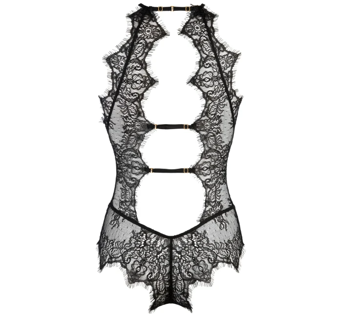 Romantické, čierne body V-9490 je kombináciou klasickej čiernej a jemných, intrigánskych béžových strihov. Čipkovaný ažurový strih umožňuje vychutnať si vzhľad hladkej pokožky a ženský vzor a nezvyčajné strihy na chrbte zdôrazňujú zvodný charakter návrhu. Zapína sa na krku a v rozkroku, bez drôtikov, pomocou nastaviteľných pásikov.