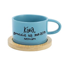 Keramický hrneček s bambusovým podtáckem – KÁVA, PROTOŽE NA KOKAIN NEMÁM