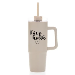 KÁVOHOLIK - béžový cestovní termohrnek s průhledným víčkem 900 ml