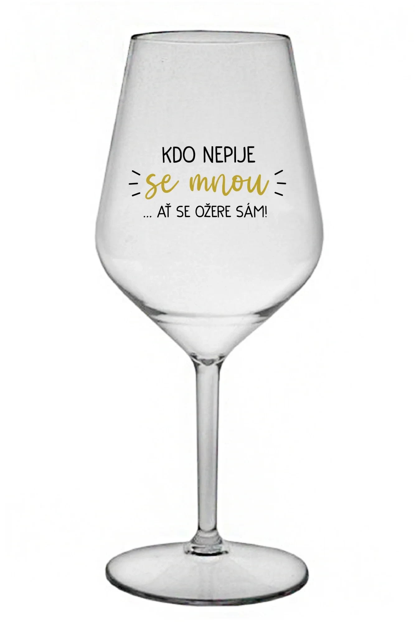 KDO NEPIJE SE MNOU...AŤ SE OŽERE SÁM! - čirá nerozbitná sklenice na víno 470 ml