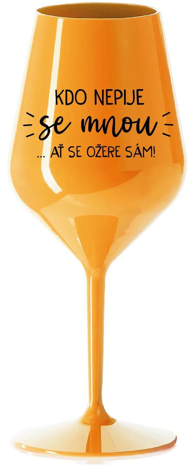 KDO NEPIJE SE MNOU...AŤ SE OŽERE SÁM! - oranžová nerozbitná sklenice na víno 470 ml
