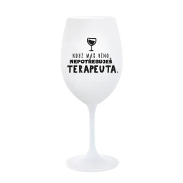 KDYŽ MÁŠ VÍNO, NEPOTŘEBUJEŠ TERAPEUTA - bílá sklenice na víno 350 ml