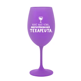 KDYŽ MÁŠ VÍNO, NEPOTŘEBUJEŠ TERAPEUTA - fialová sklenice na víno 350 ml