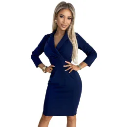 Pridanie recenzie k Tmavě modré elegantní dámské šaty s výstřihem a 3/4 rukávy model 19398655 - numoco