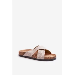 Klapki Damskie Na Korkowej Platformie Beżowe Tesolen