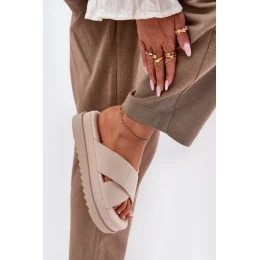 Klapki Damskie Na Platformie Z Przeplatającymi Się Paskami Beżowe Rinasara