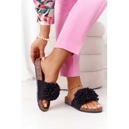 Klapki Na Korkowej Podeszwie Czarne Flowerbomb