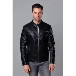 Klasická čierna pánska bunda z eko kože (11Z8025)