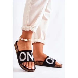 Klasické nazouvací pantofle s nápisem Černá a stříbrne model 21585871 - EVENTO
