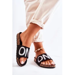 Klasyczne Wsuwane Klapki Z Napisem Czarno-Srebrne Bahari