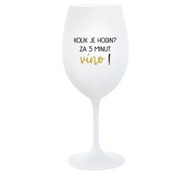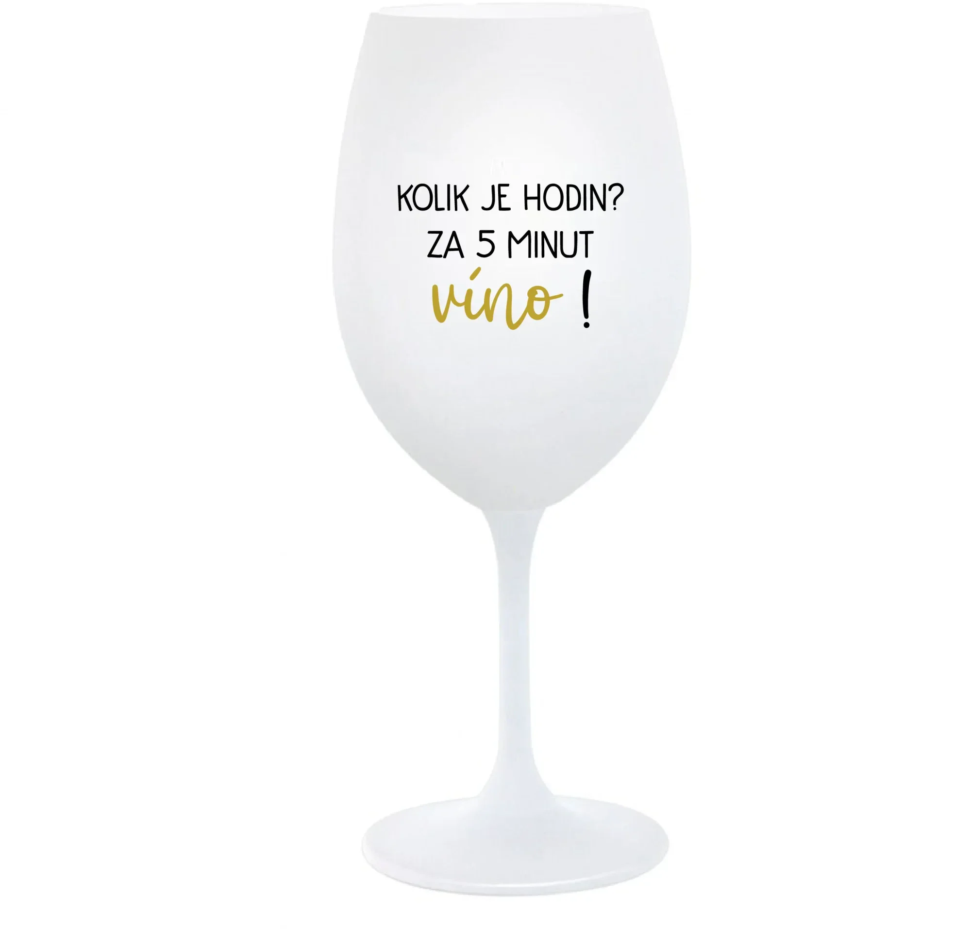 KOLIK JE HODIN? ZA 5 MINUT VÍNO! - bílá sklenice na víno 350 ml