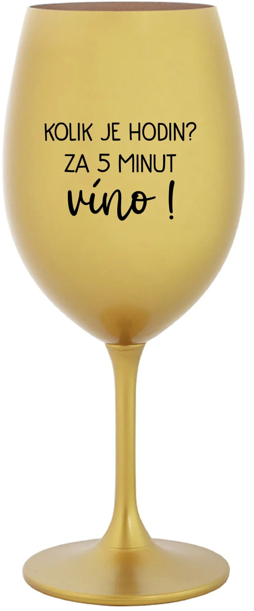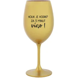 KOLIK JE HODIN? ZA 5 MINUT VÍNO! - zlatá sklenice na víno 350 ml