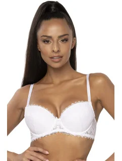 Biustonosz marki Mat. Model 3802/11 Elif. Posiada druty, które podpierają piersi odpowiednio je kształtując. Produkt posiada regulowane ramiączka z możliwością ich odpięcia. Haczyki do ramiączek metalowe. Biustonosz zapinany na haftki. Miejsce zapięcia: tył. Dwa rzędy haftek pionowych. Trzy stopnie haftek poziomych. Produkt został wykonany z 27% bawełna, 24% poliamid, 18% poliuretan, 15% poliester, 7% elastan. Produkt damski.