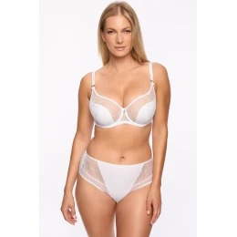 Biustonosz marki Gaia. Model 1301 Sabina. Posiada druty, które podpierają piersi odpowiednio je kształtując. Fiszbiny pionowe osadzone na bokach. Produkt posiada regulowane ramiączka bez możliwości ich odpięcia. Haczyki do ramiączek metalowe. Biustonosz zapinany na haftki. Miejsce zapięcia: tył. Produkt został wykonany z 61% poliamid, 14% bawełna, 12% elastan, 10% poliester, 3% poliuretan. Produkt damski.