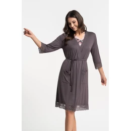 Szlafrok damski Moraj z miękkiej dzianiny wiskozowej z dodatkiem elastanu. Krótki fason z rękawem 3/4, wiązaniem w pasie i szlufkami zapewnia komfort noszenia. Model wyposażony w dwie kieszenie na biodrach i prosty, otwarty przód. Uniwersalny design odpowiedni do codziennego użytku w domu. Skład: 95% wiskoza, 5% elastan.