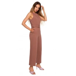 model 18004090 Kombinéza bez rukávů s páskem a sponou čokoládová - Moe