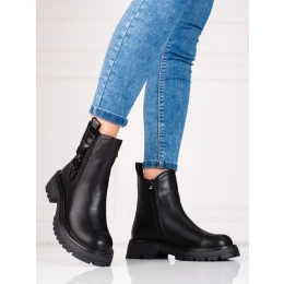 Komfortní kotníčkové boty dámské černé na plochém podpatku