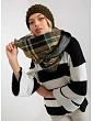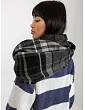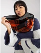 Tmavomodrý a červený dámsky komín s kockovanou potlačou.