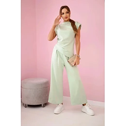 Komplet asymetrická halenka + kalhoty světle mátová