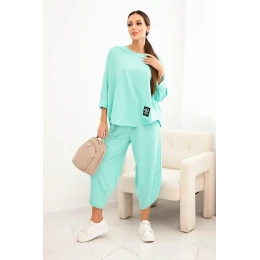 Komplet bavlněný mikina + kalhoty tmavě mátová