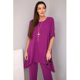 Italská dvoudílná souprava skládající se z rozšířené halenky a kalhot je elegantní souprava, která dodá kouzlo a styl každému stylu. Rozevlátá halenka dodává jemnou ženskost, zvýrazňuje postavu a zároveň zajišťuje volnost pohybu. Klasický střih kalhot dokonale ladí s elegantní halenkou a tvoří tak ucelený a stylový celek. Přívěsek ve tvaru klíče je navíc okouzlujícím detailem, který dodává této sadě originalitu a charakter a vytváří harmonickou kompozici. Jde o elegantní doplněk, který zdůrazňuje jedinečnost a smysl pro detail v celém stylingu. Tato italská souprava je ideální pro mnoho příležitostí, od obchodních schůzek až po romantická rande. Toto je rafinovaná volba pro lidi, kteří oceňují eleganci a pohodlí v jednom. Velikost je univerzální a padne ženám, které nosí velikost S, M nebo L.