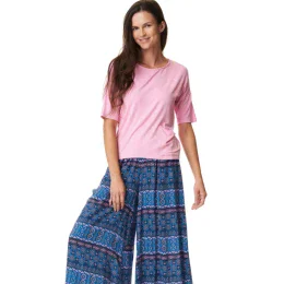 Súprava trička so spódnicnicospodni z mäkkého viskózového úpletu. Tričko voľného, šviháckeho strihu s rukávmi po lakte a výstrihom na lakeť vo svetlej rós farbe. Nohavice Culotte, veľmi pohodlné a mäkké, ideálne na jar a leto. Geometrický vzorór inšpirovaný podhalskými motívmi v modrých a rór farbách. Súprava tričká so spódnicnico;nohavicami z mäkkého viskózového úpletu. Tričko voľného, šviháckeho strihu s rukávmi po lakte a výstrihom na lakeť vo svetlej rós farbe. Nohavice Culotte, veľmi pohodlné a mäkké, ideálne na jar a leto. Geometrický vzorór inšpirovaný podhalskými motívmi v modrých a rór farbách.