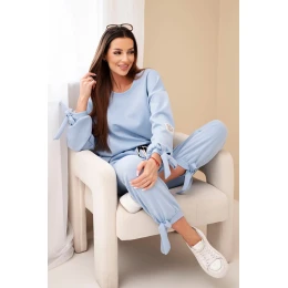Tento jedinečný set tepláků je ideální kombinací pohodlí a stylu na každý den. Vyroben z příjemné viskózy s přídavkem elastanu, perfektně se přizpůsobuje postavě a zároveň zajišťuje volnost pohybu. Mikina volného střihu s kulatým výstřihem a dekorativním vázáním na rukávech a spodní část s pohodlnou gumou a šňůrkou v pase tvoří jednotný, módní celek.