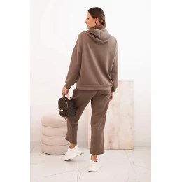 Komplet dámský máslový mikina s kapucí a kalhoty s páskem fango