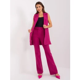 Wymiary kompletu w rozmiarze S mierzone na płasko: szerokość kamizelki pod pachami - 47 cm, długość kamizelki - 81 cm, szerokość spodni w pasie - 32 cm, wysokość stanu - 28 cm, długość spodni - 105 cm.