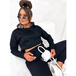 Čierna dámska mikina s kapucňou a zvieracím vzorom (82146)