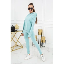 Čo ak nie tepláky - pokojne sa rozhodnite pre mäkkú dvojdielnu súpravu s legínami, najlepšie v skvelej trendy farbe. Kim Peral Buttons je zaujímavá voľba, v ktorej môžete pohodlne relaxovať v kresle. Čo vás tu privíta - určite príjemný, na dotyk elastický úplet, elegantný, neuveriteľne ženský štýl a roztomilé ozdobné gombíky na rukávoch. Blúzka s kapucňou, rukávy a nohavice zakončené mäkkými rebrovanými manžetami. Zloženie: 52 % viskóza, 29 % polyester, 19 % nylon.