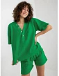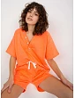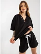 Rozmery súpravy v jednej veľkosti meranej na plocho: šírka blúzky v podpazuší - 57 cm, dĺžka rukávov - 60 cm, dĺžka blúzky - 62 cm, šírka šortiek v páse - 34 cm, výška vrchného dielu - 29 cm, dĺžka šortiek - 38 cm. :
