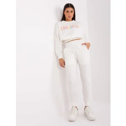 Ecru casualowy komplet z bluzą z kolorowym napisem .