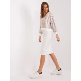 Béžová a ecru ležérna základná súprava s voľnou blúzkou.