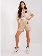 Rozmery súpravy v jednej veľkosti meranej na plocho: šírka blúzky v podpazuší - 52 cm, dĺžka rukávov - 22 cm, dĺžka blúzky - 46 cm, šírka v páse - 30 cm, dĺžka šortiek - 39 cm.: