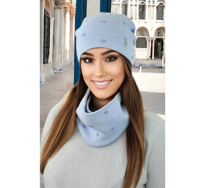 Krásna, na dotyk príjemná súprava pozostávajúca z čiapky a šálu. Dokončená zaujímavým priestorovým vzorom z lesklej priadze. Vďaka vysokému obsahu viskózy v priadzi je súprava mimoriadne pohodlná na nosenie. Súprava dokonale doplní každý jesenný a zimný styling