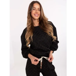 Wymiary kompletu w rozmiarze one size : szerokość pod pachami - 55 cm, długość bluzy - 65 cm, długość rękawa - 48 cm (od szwu), szerokość w biodrach - 45 cm, szerokość spodni w pasie - 37 cm (na płasko), szerokość spodni w pasie - 91 cm (po rozciągnięciu), szerokość w biodrach - 54 cm, długość spodni - 99 cm.