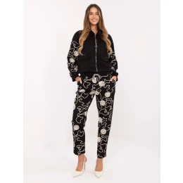 Wymiary kompletu w rozmiarze one size : szerokość pod pachami - 61 cm, długość bluzy - 57 cm, długość rękawa - 54 cm (od szwu), szerokość w biodrach - 54 cm, szerokość spodni w pasie - 37 cm (na płasko), szerokość spodni w pasie - 56 cm (po rozciągnięciu), szerokość w biodrach - 54 cm, długość spodni - 100 cm.