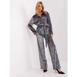 Tmavosivá velúrová súprava s košeľou.