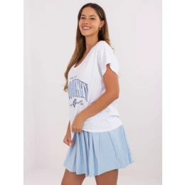 Wymiary kompletu w rozmiarze one size : szerokość pod pachami - 64 cm, długość t-shirta - 69 cm, długość rękawa - 28 cm (od szwu), szerokość w biodrach - 56 cm, szerokość spódnicy w pasie - 36 cm (na płasko), szerokość spódnicy w pasie - 50 cm (po rozciągnięciu), szerokość w biodrach - 74 cm, długość spódnicy - 43 cm.