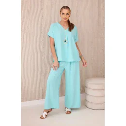 Komplet s náhrdelníkem halenka + kalhoty mincovna