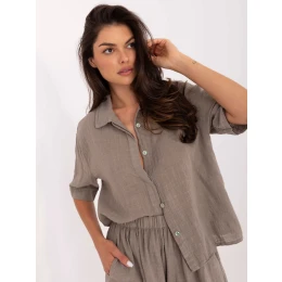 Modelka má na sebe veľkosť S. Rozmery modelky: výška 173 cm, prsia 89 cm, pás 65 cm, boky 91 cm.