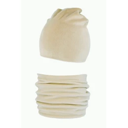 Dámska velúrová súprava pozostávajúca z hladkej čiapky a kamzíka. Mimoriadne mäkký a príjemný na dotyk, dobre ťahaný materiál. zloženie: 100 % polyester.
